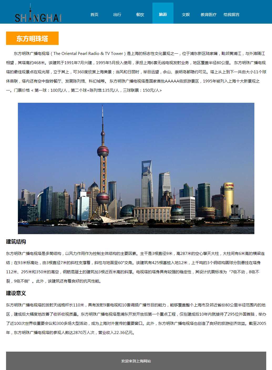 上海旅游网站带js