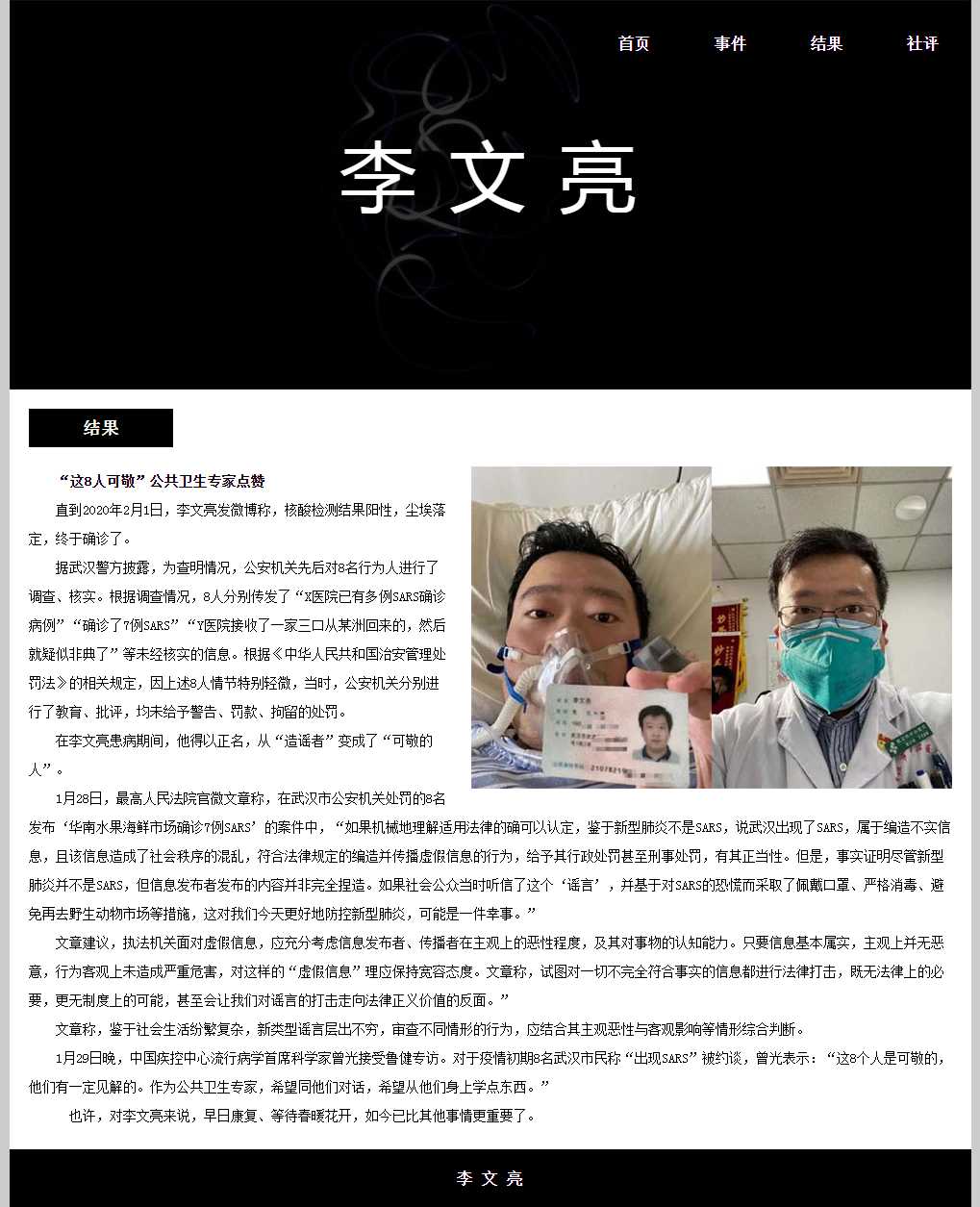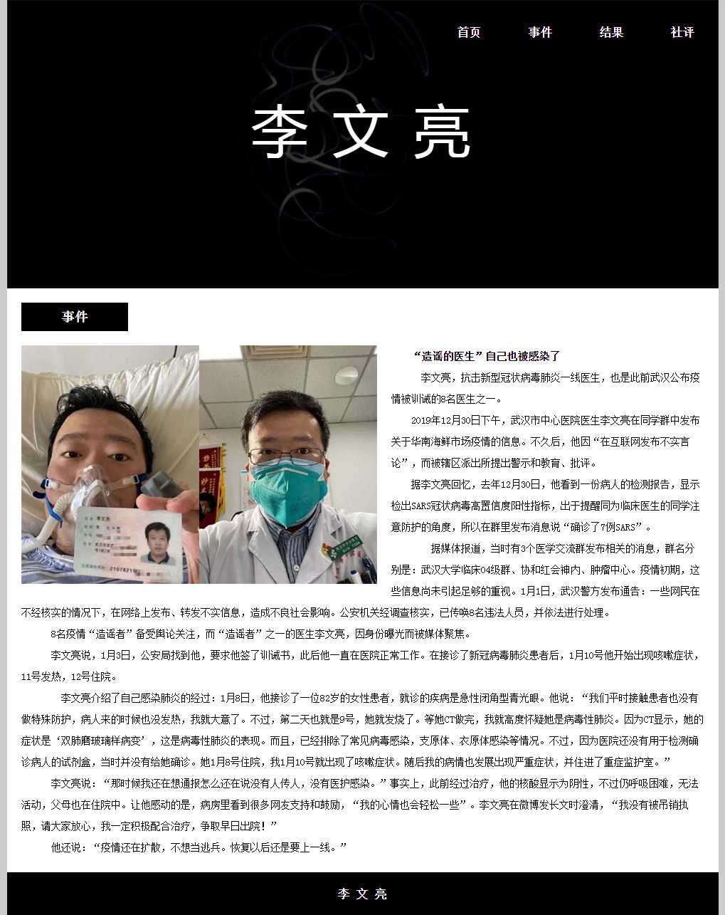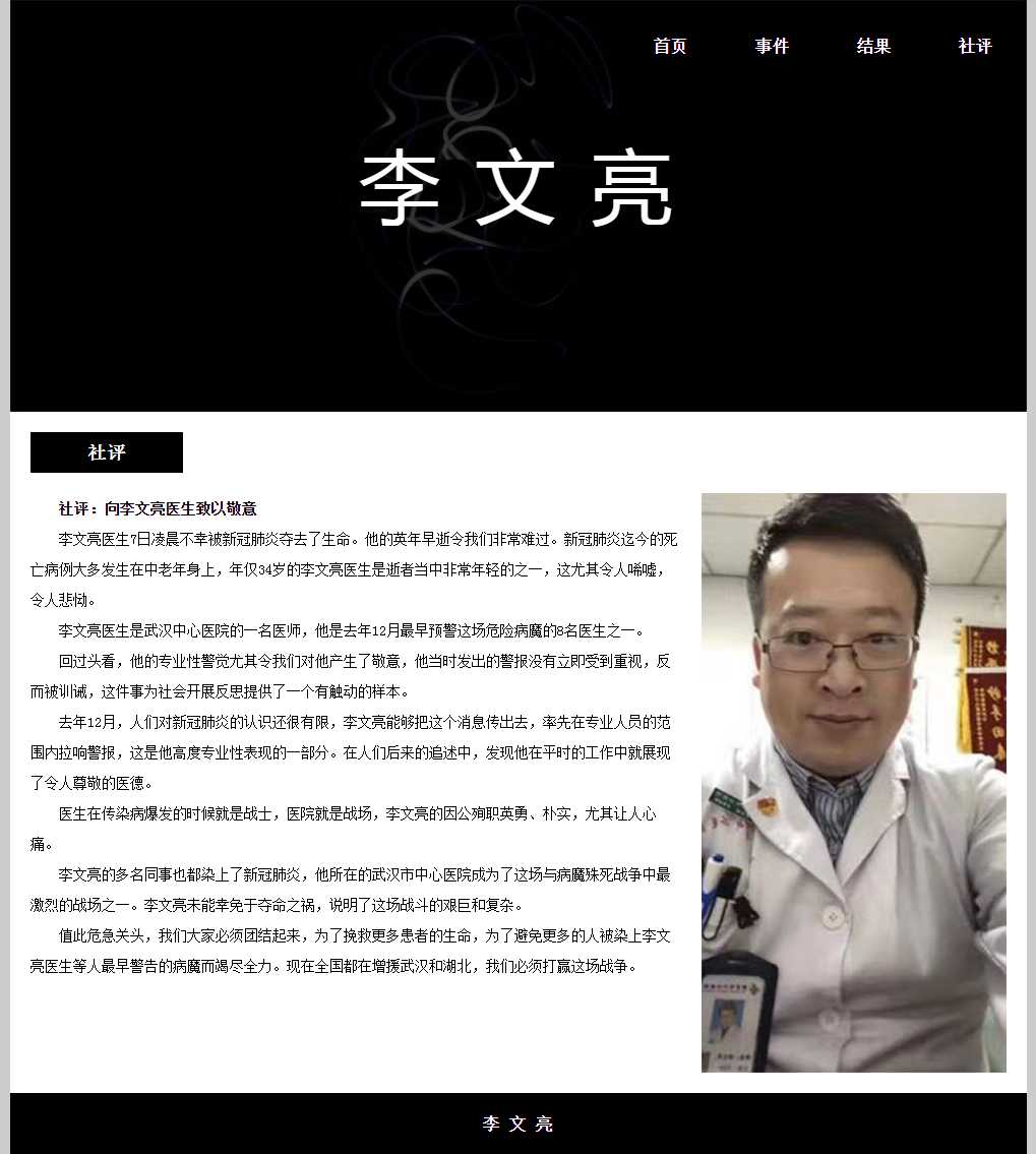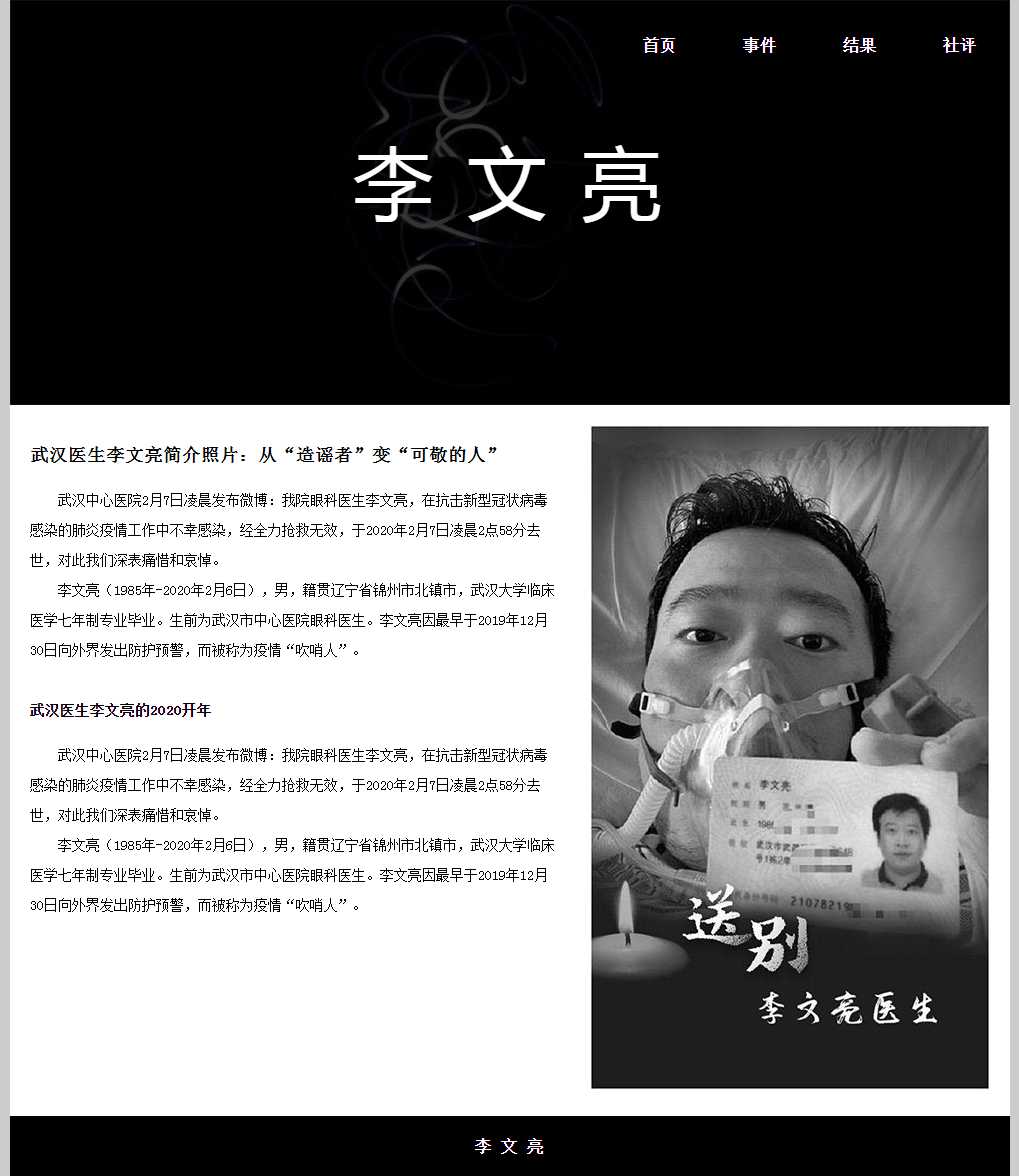新冠疫情英雄人物李文亮