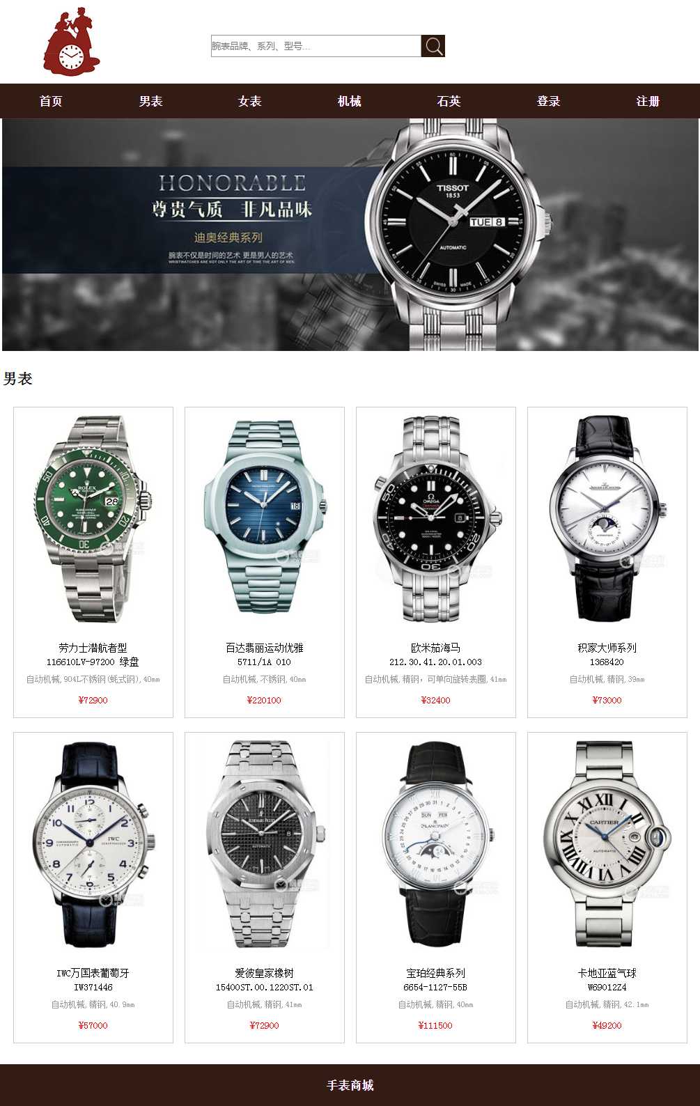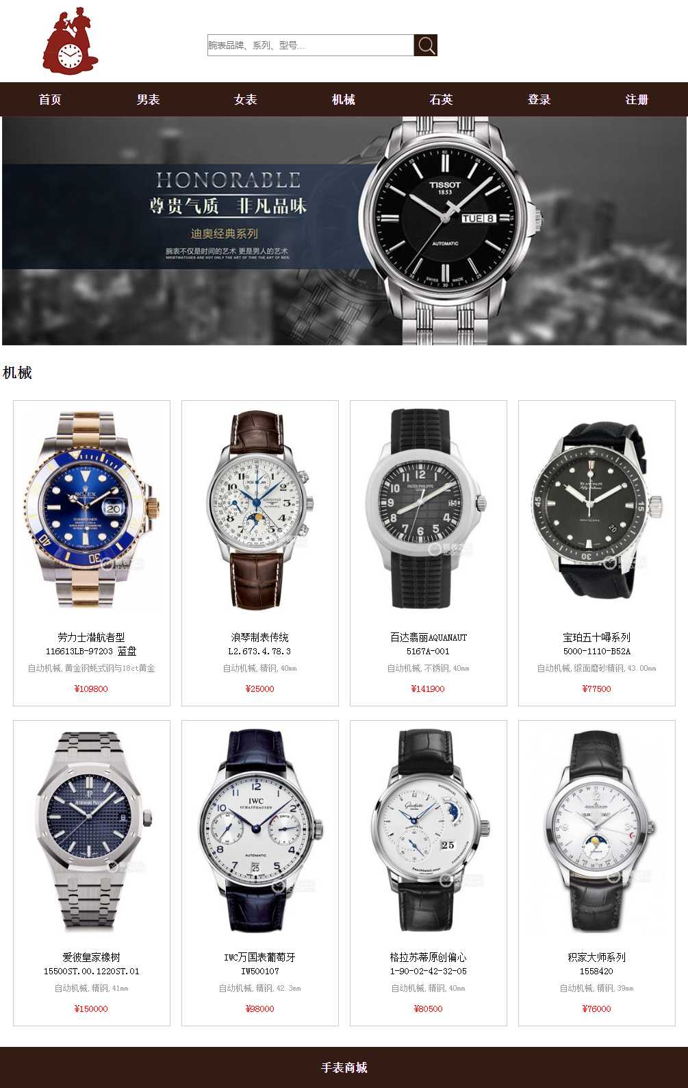手表商城带登录注册