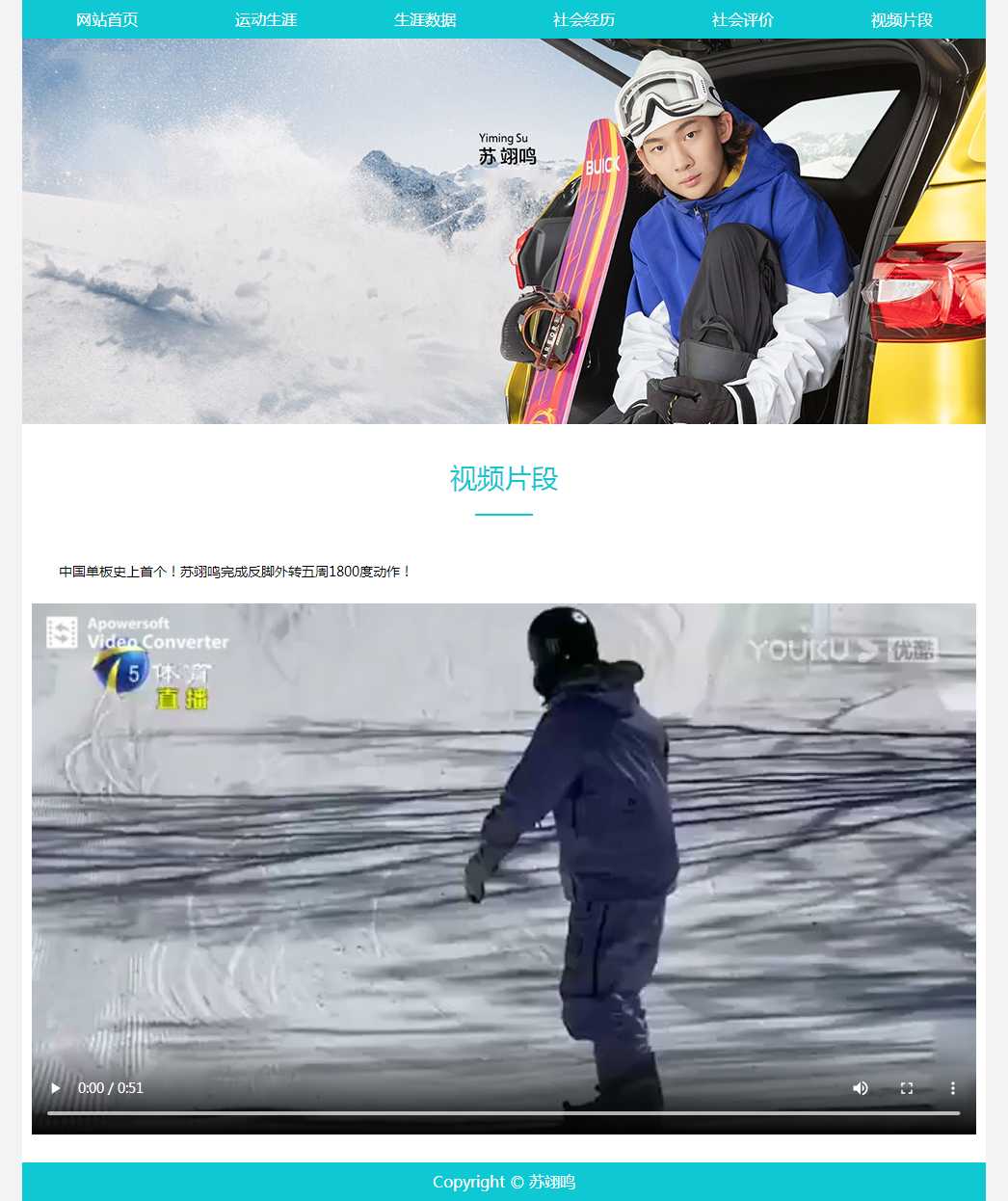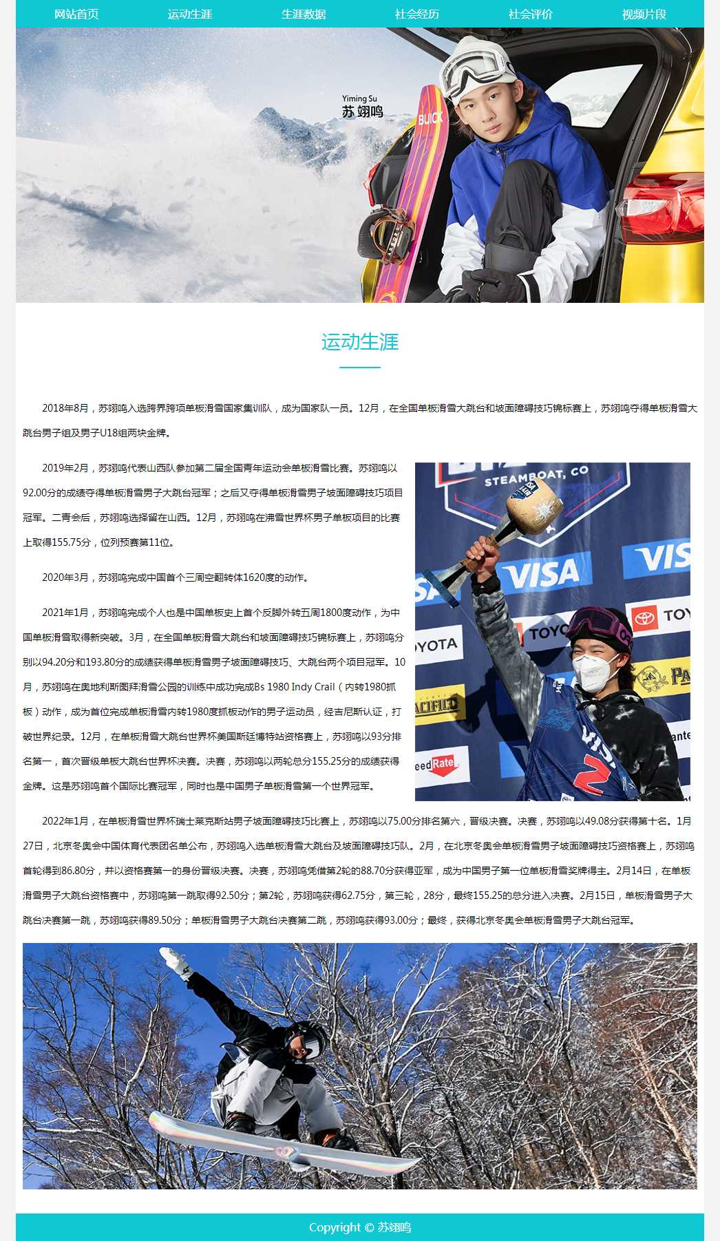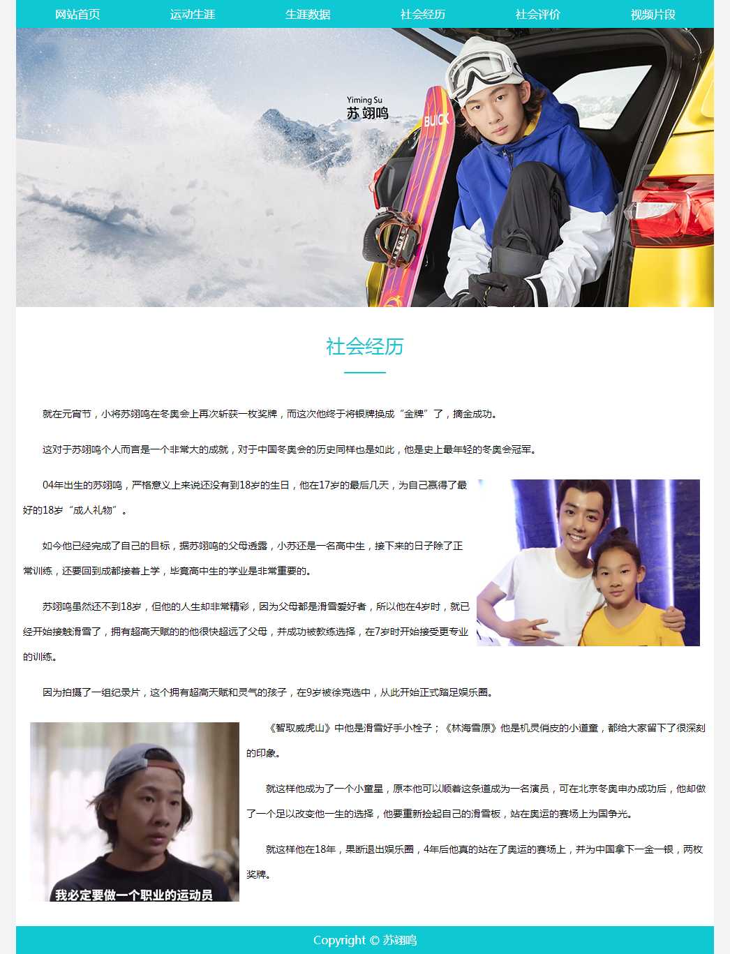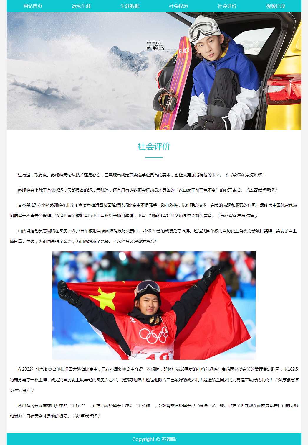 奥运选手苏翊鸣介绍带视频