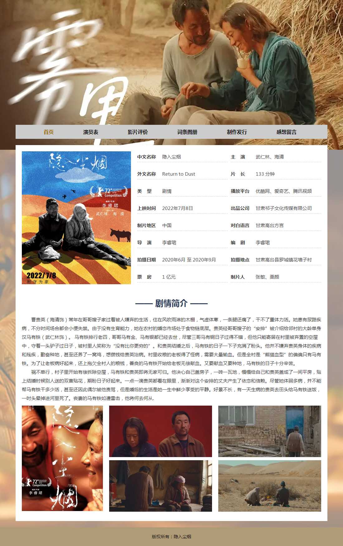 电影隐入尘烟介绍